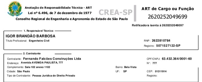 Contamos com uma equipe formada por profissionais qualificados e experientes, comprometidos com a excelência em cada detalhe da obra. Nossos colaboradores atuam com responsabilidade, organização e foco em resultados, garantindo a execução eficiente dos projetos. Investimos constantemente em capacitação e boas práticas para assegurar qualidade, segurança e alto desempenho em todos os serviços prestados.Fernando Falcões Construções, conta com engenheiros devidamente qualificados, Registrados nós órgãos competentes, CREA-SP.